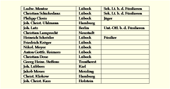 Die Inschriften des Gedenkkreuzes: Ruhestätte der im Befreiungskampfe am 14. November 1813 bei Mölln gefallenen Hanseaten. Gewidmet von F.C.N. Warncke 1865. Vergesst die treuen Todten nicht. 1813 November 14. Quelle: Gedenksteine an der Landstrasse zwischen